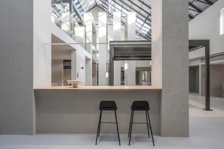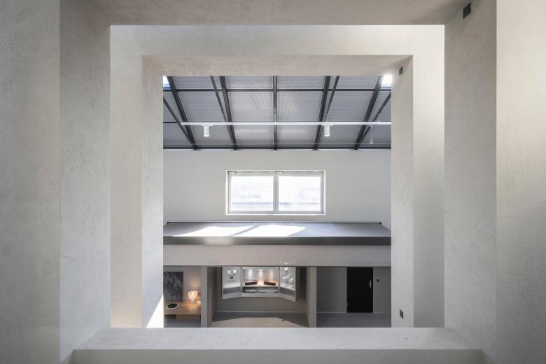 Ein speziell gestalteter zweistöckiger Kubus im Showroom bietet den Kunden die Möglichkeit, die Produkte aus verschiedenen Blickwinkeln zu betrachten und ihre Funktionen und Designs zu erkunden. Diese neuen Perspektiven verstärken das inspirierende Erlebnis und machen die Produktvielfalt auf ansprechende Weise erlebbar.