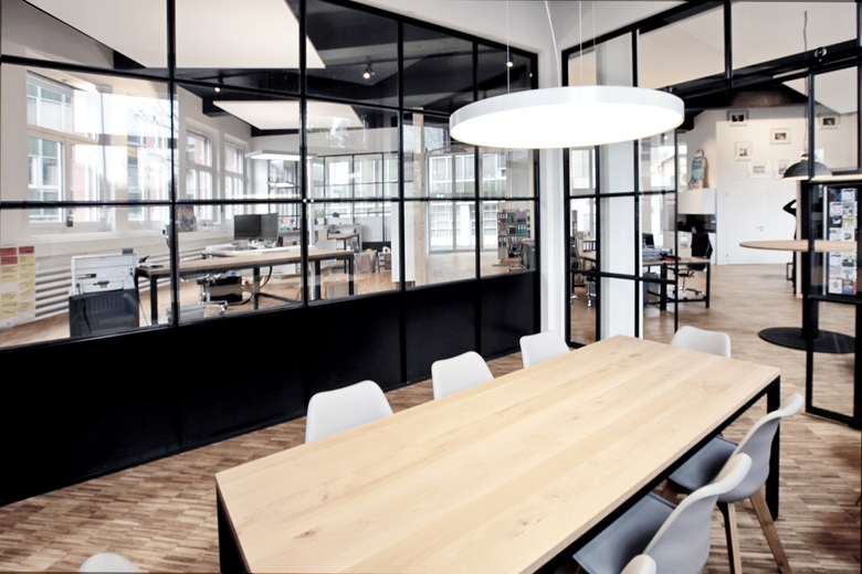 Der sauber gelöste und spannende Grundriss macht aus dem Grossraumbüro etwas ganz Neues und Eigenes. Substanz aus eigenem Quellgrund : Bilder vom bildenen Künstler Andrea Giuseppe Corciulo aus St.Gallen fügen Sich in Perfektion in die Räumilchkeiten ein. Die spannende Architektur des Gebäudes wird in Vollendung inszeniert und die hohen, luftigen Räume erhalten durch das neue Design eine nie da gewesene Leichtigkeit. Das perfekte Arbeitsklima in einer spannenden Umgebung also – Das ist das Openair St. Gallen Office.