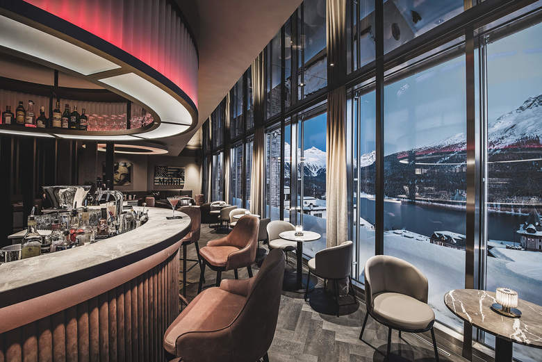 In der obersten Etage des Hotels befindet sich die "Sky Bar", die höchstgelegene Rooftop Bar der Schweiz mit spektakulärem Blick auf St. Moritz. Dem einzigartigen Blick über St. Moritz und die Natur setzt die designte Bar ein stimmiges Kontrastprogramm entgegen. Stilvolle Möblierung und Materialien ergänzen den neu gestalteten Raum. Zu atmosphärischer Musik pulsiert die eigens für die „Sky Bar“ kreierte Highlight Leuchte "O" mit. Im sechsten Stockwerk werden alle Ansprüche an eine Rooftop Bar erfüllt - eine ausgelassene Stimmung in luftiger Höhe.