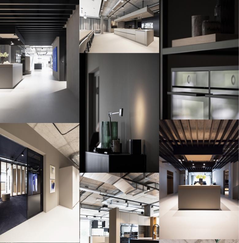 The Zugorama includes the different product worlds, a show kitchen including a dining table for up to 22 guests, a wine expertise room, the „blue room“ and separate office and meeting areas. The aesthetics, a pure and clear language of form combined with selected materials brings out the design of the appliance lines in particular.