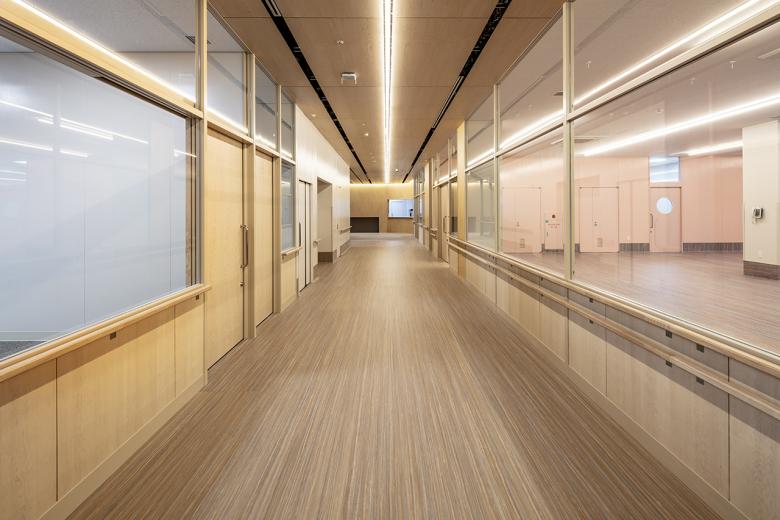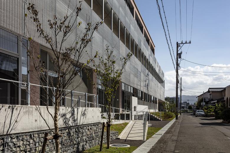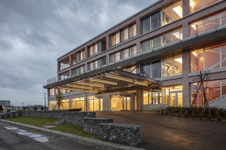 A typical hospital has many walls and gives the impression of being "closed", but by using a lot of glass surface, it "opens to the area" without hiding the activities being carried out inside. The north side of the outpatient waiting space is made entirely of glass so that you can see from the north side of the building through the multipurpose room and rehabilitation room to the park on the south side. The hospital room and medical treatment room are planned on the second floor and above, and the first floor is used for outpatient / emergency and rehabilitation / day care to make the flow line natural and rational. As for the floor structure of the Nursing care facility for the elderly, the 3rd and 4th floors are allocated to unit-type private rooms and the 2nd floor is a conventional multi-bedroom to provide a living environment according to the usage fee. Brick tiles are pasted on-site on the ECP for the outer wall. A warm brick tile is specially made and used instead of an inorganic appearance. The expression and the transparency of the glass actively participate in the cityscape and become a hospital and welfare facility that develops with the community.