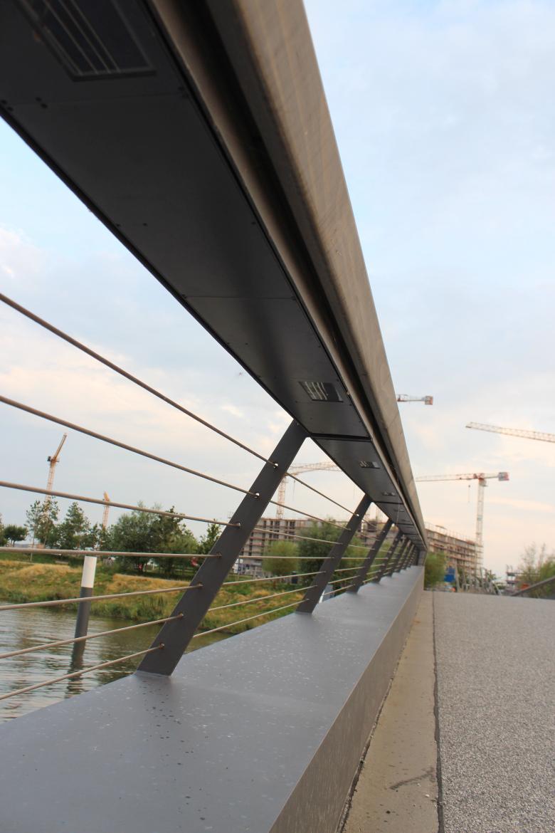 The challenge was to equip the handrail lighting with submersible IP68 lights, including electrical wiring, because of the location, flooding of the bridge cannot be ruled out. In order to avoid the risk of an electric shock, the system is operated with low voltage and the control gear is housed externally in a higher-level control cabinet. The trouble-free implementation of the 60 m long bridge lighting with approx. 75 m supply line in combination with the dimmability was also challenging. The luminaire as a unit from the control gear to the luminaire was part of our planning order.
