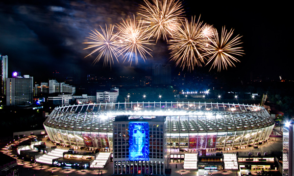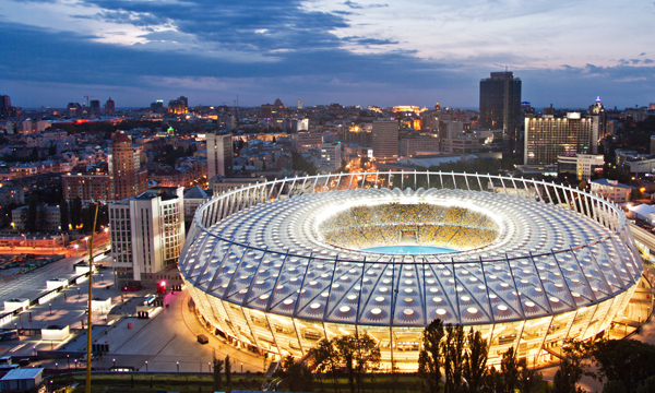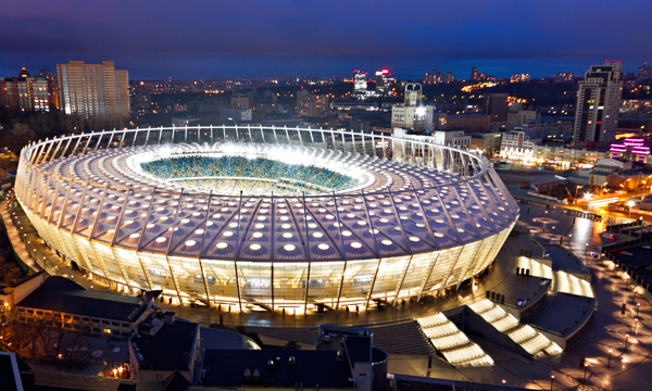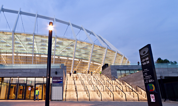 A clear total impression is significant for the exterior effect of the stadium. The shell-shaped grandstands form the core element. Therefore the view from below is given full-coverage lighting. The lighting also guarantees the transparency from the outside to the inside and the readability of the printed facade. A plastic ridge effect is formed as well. In the stadium itself, the lighting of the view of the shells from below lends a floating character.