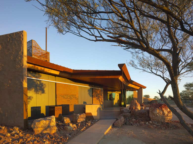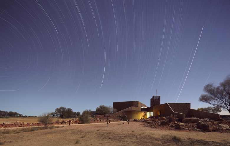 The Australian Age of Dinosaurs Museum is a small project on a mesa in far North West Queensland. It is constructed from a mix of red earth from the site and concrete, and designed to appear as if folded out of the landscape. The project was undertaken pro bono, such was our passion for the objectives of the client, a cattle station owner turned palaeontologist following his discovery of significant dinosaur fossils on his property a decade ago.