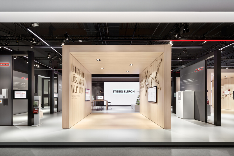 The guiding theme of the clear line was implemented holistically in the concept. In Stiebel Eltron's brand world organic forms give way to straight lines to create clarity. In this way, visitors can move purposefully through the world of Stiebel Eltron.