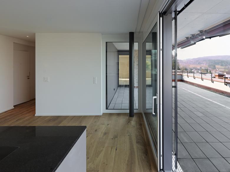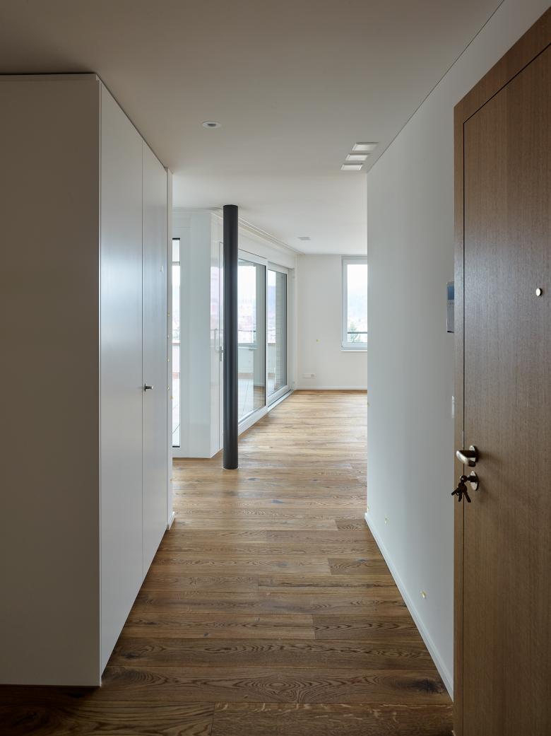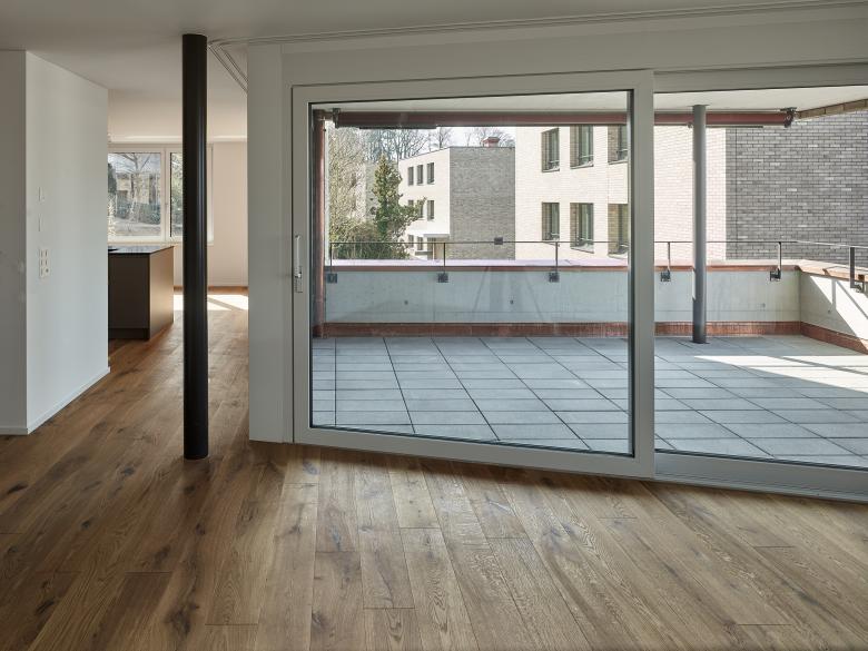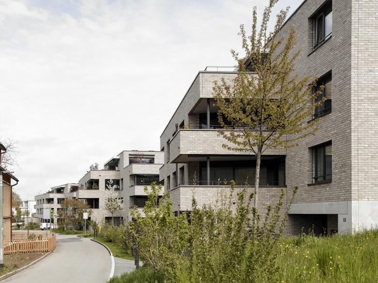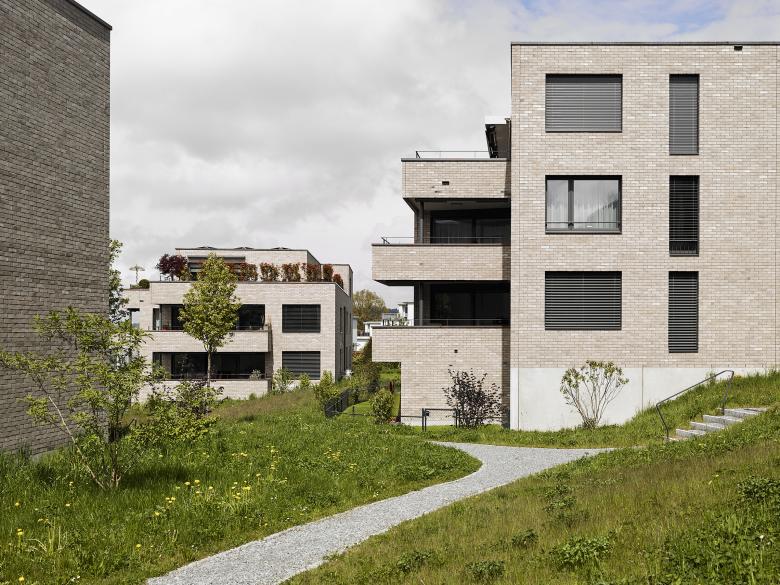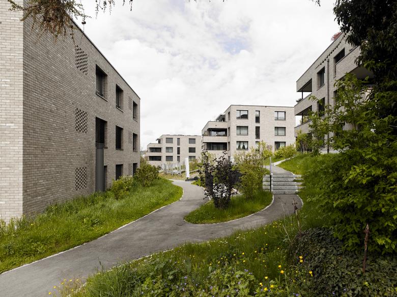 Bewusst wurde eine Gebäudetypologie von Mehrfamilienhäusern entwickelt, die stark mit dem Terrain arbeitet und sich bezüglich Körnung und Massstäblichkeit ortsbaulich ins Wohnquartier einbindet. Insgesamt wurden vier Gebäudetypen entworfen, denen allesamt die gleichen architektonischen und gestalterischen Überlegungen zugrunde liegen. Zwei Gebäudekörper werden sowohl in der Ebene als auch in der Vertikalen versetzt ineinander geschoben. Dadurch entstehen Gebäudestaffelungen, die sich mit dem Gelände nach oben entwickeln und Dachterrassen, welche als fünfte Fassade Gestaltung erfahren.