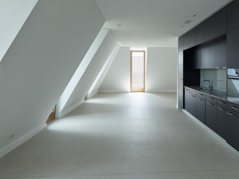 Wohnen ist möglich. Die Dachwohnungen verfügen über einen internen Aufstieg zur Dachzinne mit zwei privaten Dachterrassen, von denen aus das ganze Quartier überblickt werden kann.