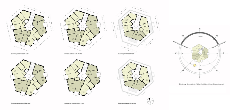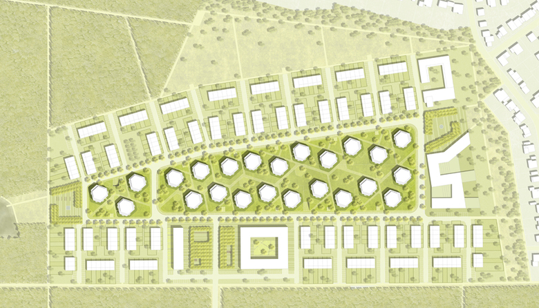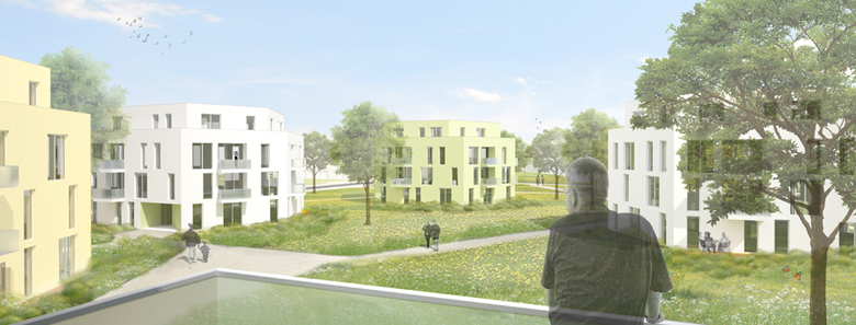 The central portion of the planning area becomes a living in the Park. The specific characteristic is the Sun park, where the buildings are arranged as solitaires. The entrance of the new development is defined by a large public square.