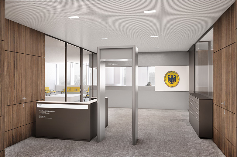 Find more Information here: http://di-a.de/en/interior-design-architecture/in-progress-en/constructional-corporate-design-diplomatic-representation-germany/