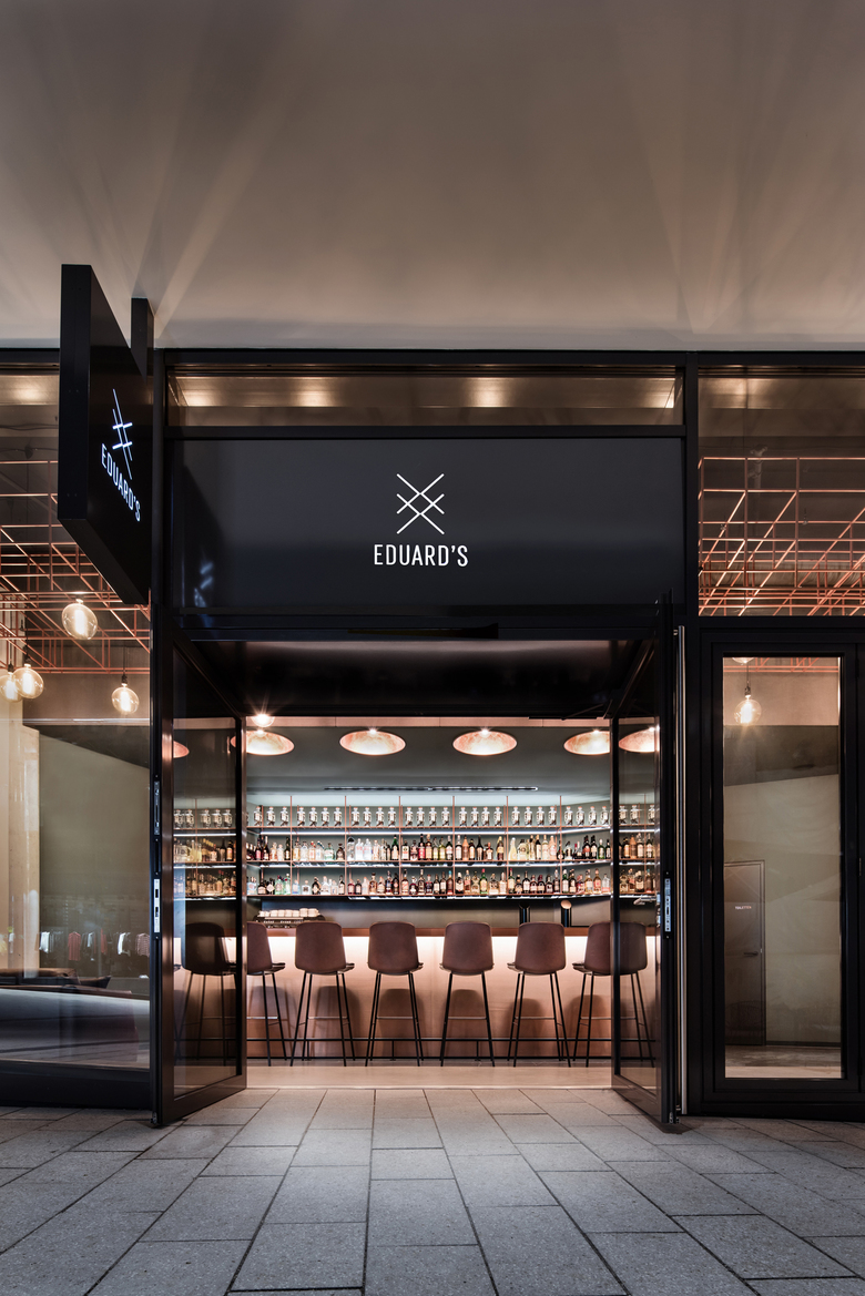 DIA – Dittel Architekten is responsible for developing the restaurant’s design concept, the name Eduard’s, its corporate design, and also for the construction of the bar in Stuttgart’s Dorotheen Quarter. Named after the founder of the Breuninger department store, this new lifestyle bar is making a bold statement in the new quarter. The striking design provides a fresh perspective on a piece of history, making the counters the focal point of where it’s at, much like the early days of bar culture.