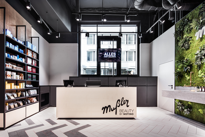 DIA – Dittel Architekten has developed, designed and implemented the first of 10 stores planned in Germany for Mußler Beauty by Notino. The concept aims to bring the online-offline brand symbiosis to life in this space whilst promoting and expanding customer loyalty. Mußler Beauty, Stuttgart’s traditional perfumery, and Notino, Europe’s leading online retailer for beauty care, merged to benefit from their expertise in stationary and online trade.