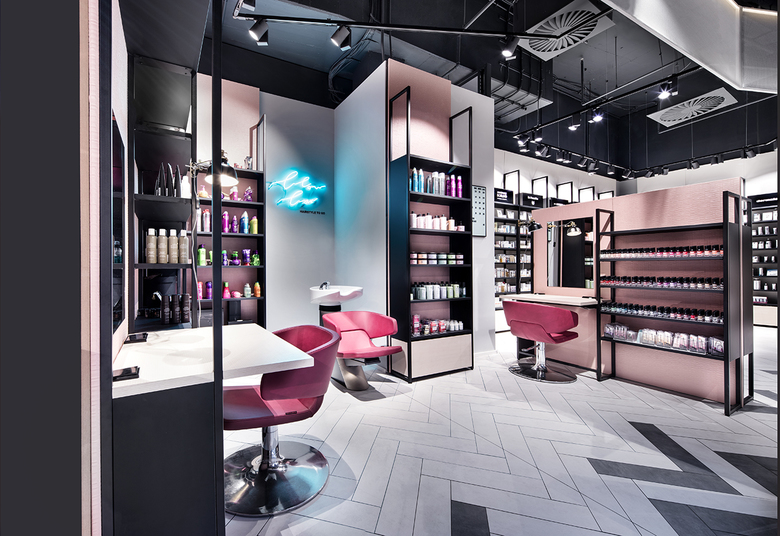 The holistic brand experience is the focus of the design concept. Everything revolves around what the consumer is looking for in stationary retail: individualization, emotionality, social exchange and exclusivity. Even from the outside, a digital shop window beckons as well as the view into the store with its live promotions. The classic shop is transformed into a showroom, and the brand gets a face. Extravagant product stagings, pop-up spaces for niche products and a spacious seating landscape are featured in this open spatial concept that intuitively guides consumers through the world of experience. Hair styling bar, brow bar, “Men’s World”, make-up school and exclusive workshops with the stars of the beauty scene each have a place in individual units, individually designed and with a strong atmospheric effect.