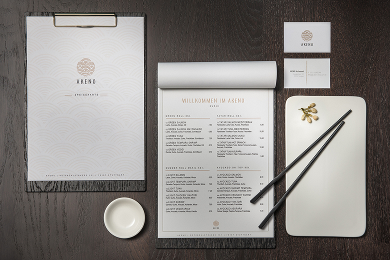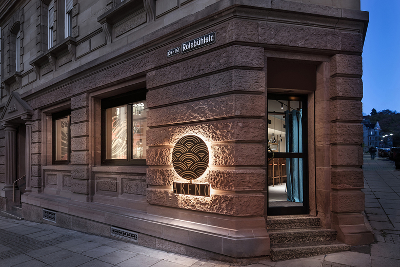 The popular district of Stuttgart-West has just added an exciting new gastronomy concept to its range of attractions. Right from the beginning, the brightly lit “Akeno” logo invites both locals and guests to take a step into the Asian restaurant for sushi and grilled food. DIA – Dittel Architekten developed a comprehensive branding and design concept for the restaurant – from choosing an appropriate name all the way to taking care of interior design – that utilizes key symbols of Japanese aesthetics and integrates them into new contexts to create a truly spectacular ambience.