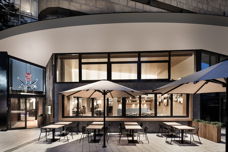 An extension to the fashion house with its two opposing entrances, Sansibar by Breuninger connects Karlspassage to Dorotheenplatz during store opening hours. With 377 seats in the indoor and outdoor areas and occupying 756 square metres, the restaurant will be the flagship of the new quarter even after the store has closed.