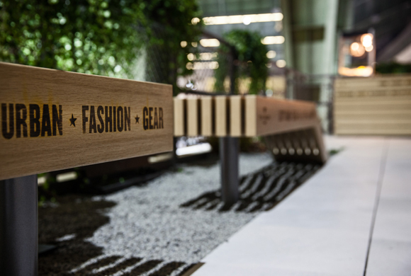 The concept of the presentation is based on the philosophy of the High Line in New York. This refers to the now defunct elevated railway line which once linked to the Meatpacking District in Manhattan. Over the last few years, the area has been re-designed to create a lively park above the rooftops of the town which is popular with New Yorkers and tourists alike. Visitors to Tom Tailor space were also treated to a taste of this urban American zest for life and were able to experience a stroll through the ‘urban jungle’ of New York. The key materials used in the stand include steel from the High Line and its plants, brick, wood, brass and leather features.