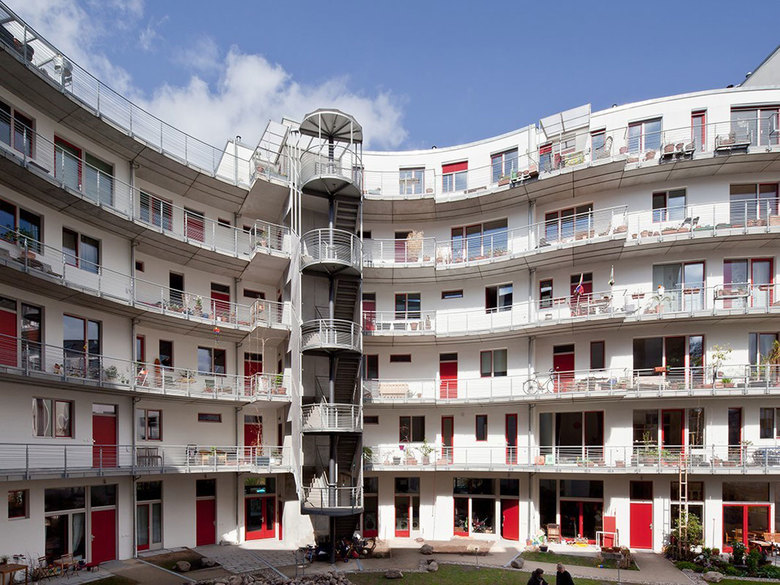 Der Entwurf des Niedrigenergiehauses entstand anhand der Anforderungen der wachsenden Gruppe in enger Abstimmung zwischen Projektsteuerung, Bauherren und Architekten und konnte so auf die räumlichen und finanziellen Bedürfnisse der Nutzer zugeschnitten werden. Die Wohnungen sind über einen im Hof freistehenden Treppenaufgang und über Laubengänge barrierefrei erreichbar.
