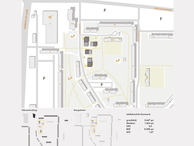 Wie neugierige Kinder nehmen die Gebäude den Dialog mit ihrer Umgebung in alle Richtungen auf. Das Mass an Öffentlichkeit und Rückzug in den dabei entstehenden Zwischenräumen kann selbst bestimmt werden. Es wird als Modellprojekt genossenschaftlichen Engagements unter Beteiligung von lokalen Akteuren vorgeschlagen: Eine gemischte Struktur mit Selbsthilfeanteilen, nicht nur als Eigentum sondern auch zur Miete.