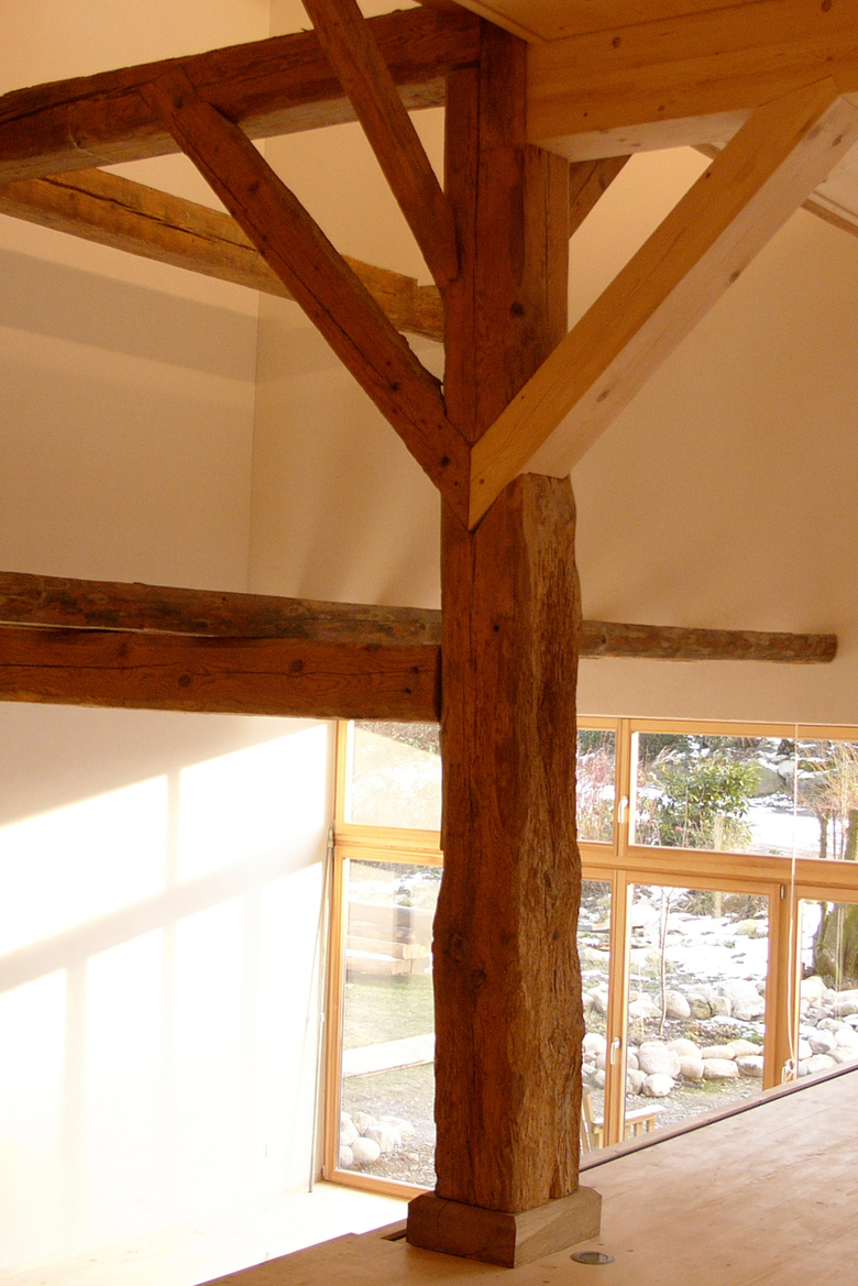 Scheunen sind Räume mit interessanten Raumformen, einer Baustruktur mit kräftigen Holzdimensionen und einer nachvollziehbaren Fügetechnik. Diese Qualitäten können zu aussergewöhnlichen Raumkonstellationen und einer starken Erlebnislandschaft genutzt werden.