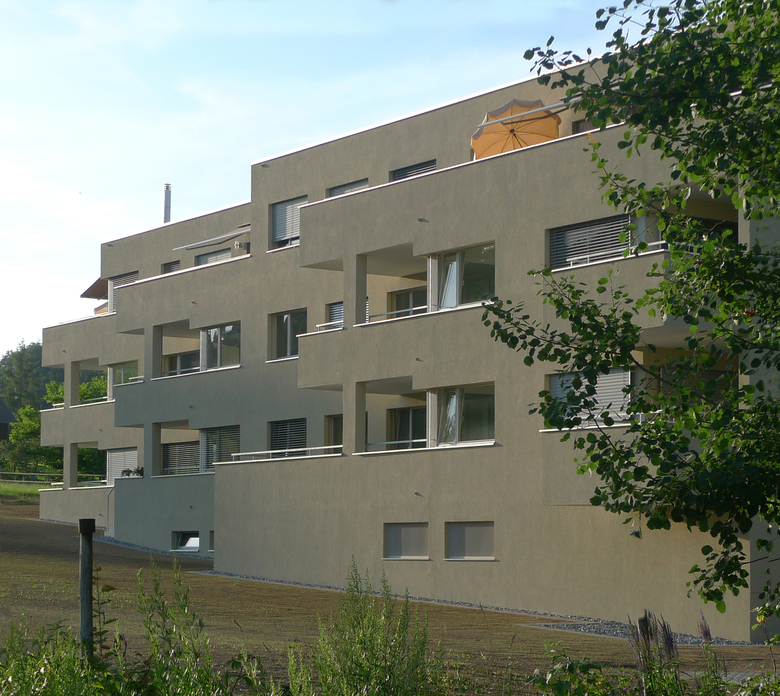 Die Staffelung des Baukörpers bewirkt wenig einsehbare Balkone und das optimale Erleben der Abendsonne.