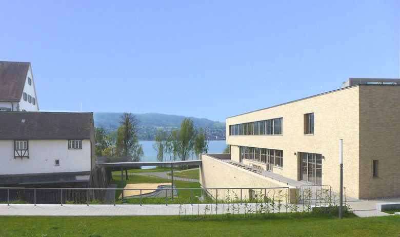 Die bestehende Schule ‚Schloss Gaienhofen‘ wird um zwei Neubauten erweitert, das Campusgebäude mit Schulsporthalle, Lehrerzimmer und Unterrichtsräumen sowie das Musikgebäude mit Unterrichtsräumen als eingeschossige Aufstockung auf das bestehende Gemeindehaus.