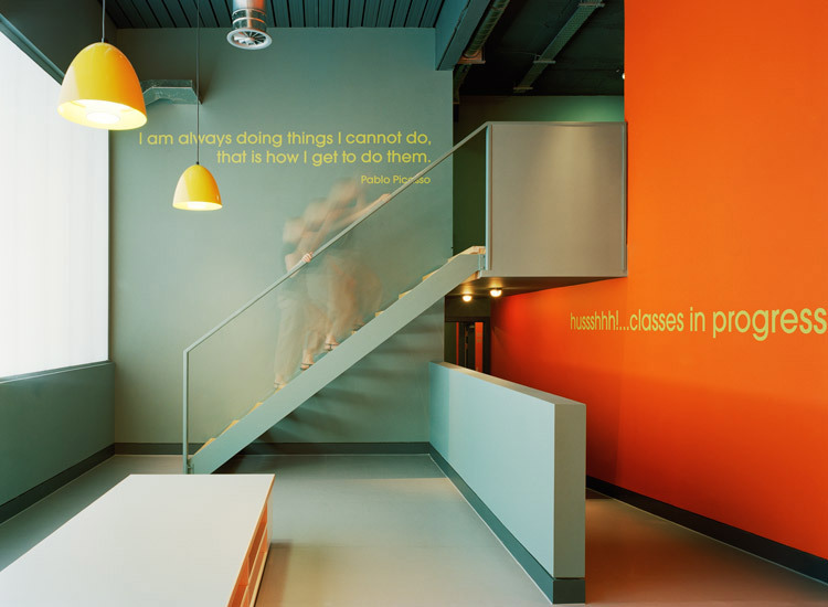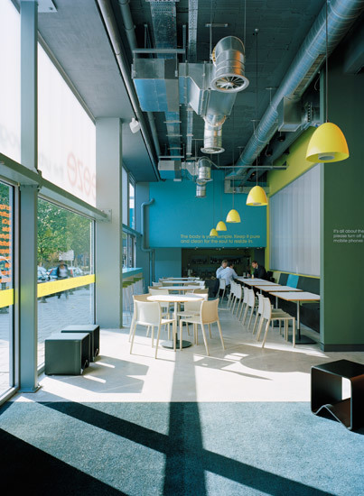 Conversion of a former car workshop to incorporate two yoga studios, treatment rooms, changing facilities, reception and club lounge. The new street facade is formed from a mix of glazed and polycarbonate panels creating a balance of direct and diffused light to the spaces within. A strong colour palette was used to designate the varied spaces within the building.