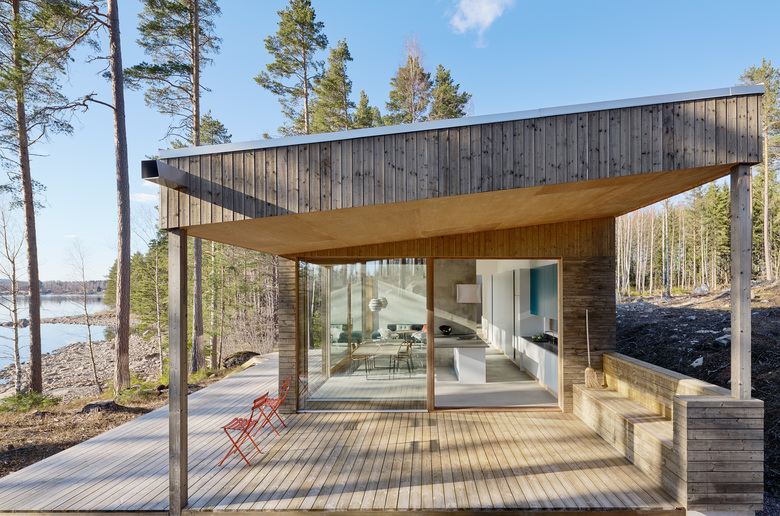 There is a strong summer house tradition in Sweden celebrating the great outdoors and enjoying the precious sun-filled days in the countryside. Located three hours north of Stockholm, in a forest area of silver birch and pine trees on an isolated 2000 square metre plot, Dive Architects have designed a home that will increasingly merge with the surrounding nature over the years.