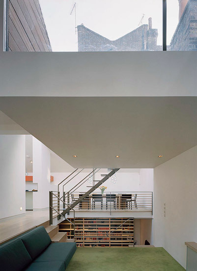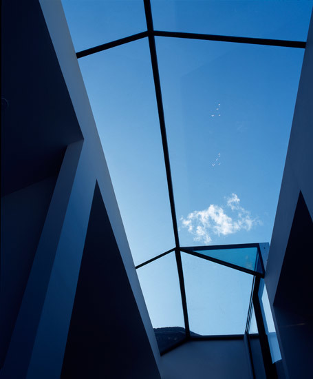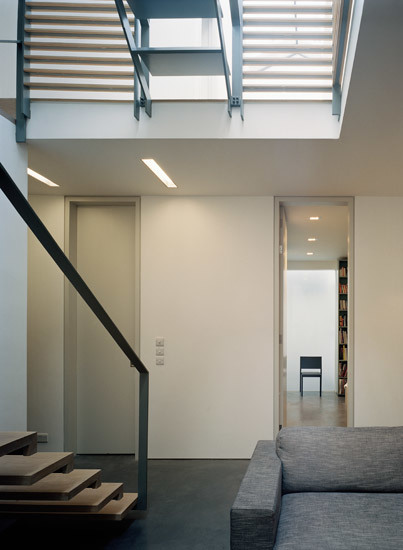 A large roof light spans across the building bringing light down to the ground floor. All bedrooms and en-suite bathrooms are located on one side of the house, whilst 'living rooms' are divided into three levels, defining different spaces whilst moving up the house.