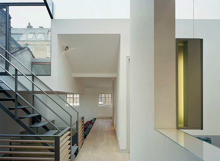 A converted mews house off Oxford Street retaining only the surrounding outer brick walls. The ground floor was formerly used as a five-space garage with a two bedroom flat above. Remodelled to become a family house with a roof garden.