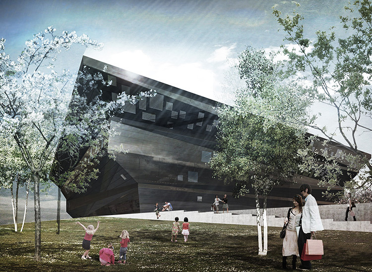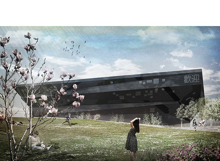 Working in close collaboration with Frontier Design International we have developed this design for a new build shopping complex in north eastern China. The form of the building is derived from the design of the surrounding landscape which is in turn a response to the constraints of the site and a solution to provide all car parking to be underground.