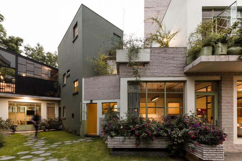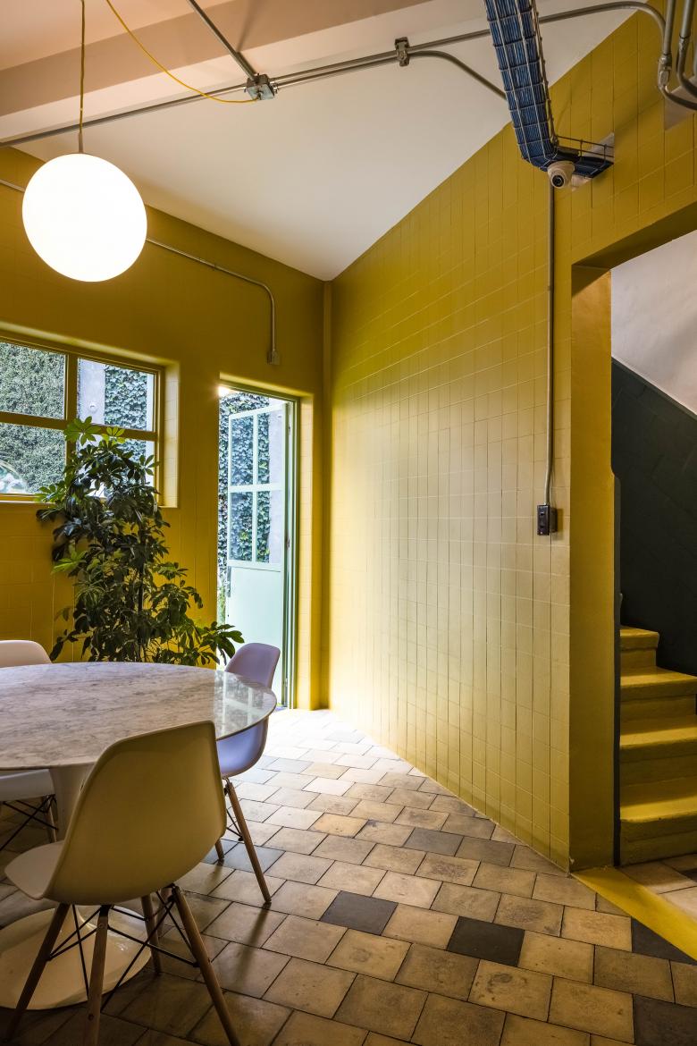 Con el objetivo de respetar el partido arquitectónico de la ca-sa, el proyecto distribuyó las distintas áreas operativas de la empresa en los espacios originales del inmueble y adicional-mente se construyó un volumen complementario en la azotea del antiguo despacho, en el cual se albergó el taller de diseño. La propuesta buscó rescatar la esencia modernista de la casa mediante la rehabilitación tanto de herrerías como de acaba-dos originales. Los trabajos de restauración se complementaron con la introducción de materiales reciclados contemporáneos en conjunto con una paleta de colores verdes y amarillos, que le brindan una imagen respetuosa al inmueble y a su vez refres-cante. Todos los espacios principales generan una relación en-tre el interior y el exterior, estando siempre en contacto con la vegetación de una diversa paleta vegetal de distintas especies de pastos, enredaderas y plantas de ornato, logrando así crear su propio contexto en una relación entre arquitectura y paisaje.