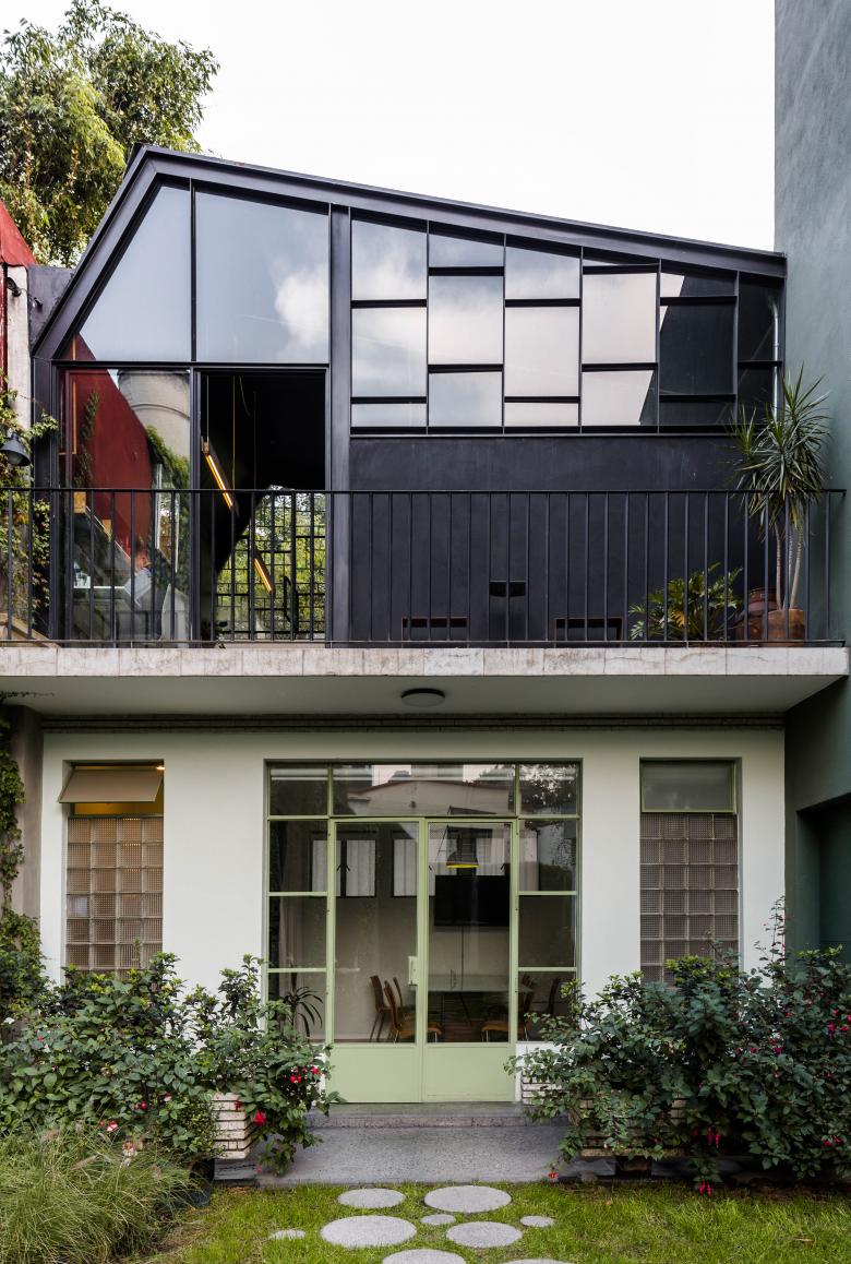 Durante la afortunada rehabilitación urbana de la glorieta del Parque del Conde, en la colonia San José Insurgentes, una zo-na que se encuentra en constante desarrollo al sur de la CDMX, se generó una propuesta de restauración para una casa de los años 40’s, que se convirtió en la sede de nuestras oficinas, es por ello que el eje rector de diseño fue potenciar las caracterís-ticas patrimoniales del inmueble de 430m2 mediante la rehabili-tación de los elementos originales y el retiro de aquellos añadi-dos que distorsionaban su imagen.
