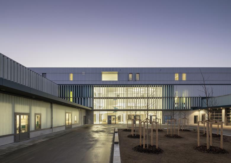 Die von DÖMGES ARCHITEKTEN geplante Berufsschule I (Gewerblich-Technische Berufsschule) gibt mit seinen großen Werkhallen für die verschiedenen Fachbereiche ca. 2.000 Berufsschüler*Innen neue Lehr- und Ausbildungsräume.