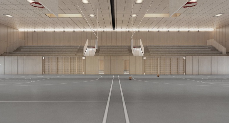 La transformation et l’extension de la double salle de sport existante, une halle métallique modulaire des années ’70 construite avec une grande économie de moyens, constitue la dernière étape de l’agrandissement complet du site scolaire du Léman. La faible constitution de l’enveloppe thermique, de la charpente métallique ou la qualité des aménagements intérieurs ne répondaient plus aux exigences actuelles et ont nécessité une réfection complète pour répondre aux normes actuelles (sismiques, performances thermiques).