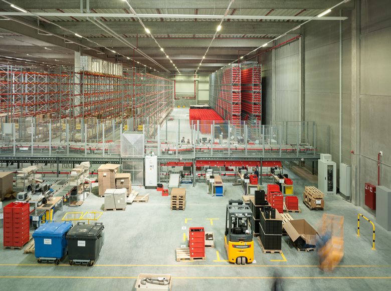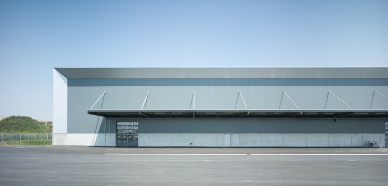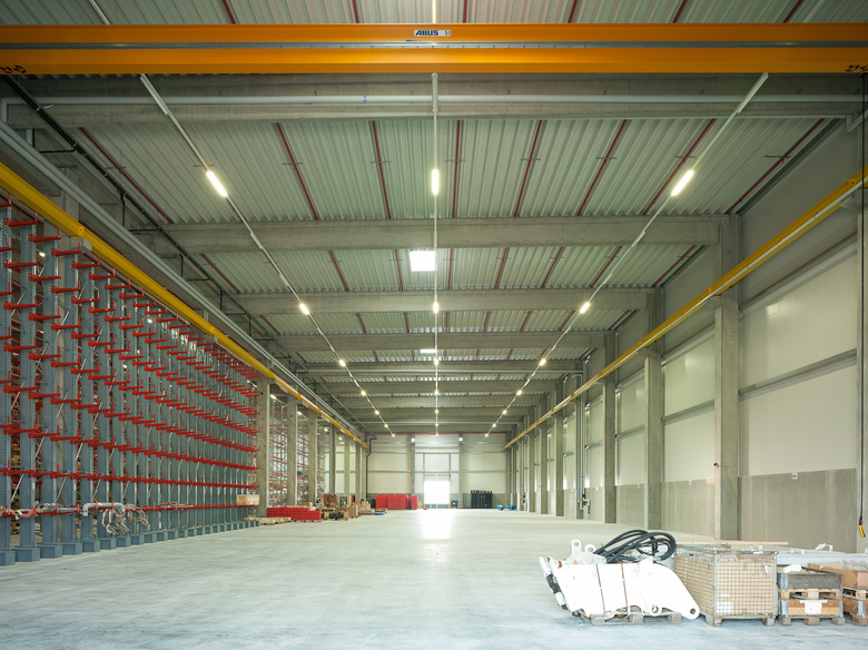 Die Fa. Kiesel GmbH errichtet in Stockstadt/Rhein einen zentralen Umschlagplatz für die Auslieferung von Baumaschinen und passenden Ersatzteilen. In einem ersten Schritt wurde eine Logistikhalle mit 13.000m² Nutzfläche errichtet. Das innovative Energiekonzept beinhaltet eine Industrieflächenheizung, die über Luft-Wasser-Wärmepumpen mit Wärmerückgewinnung temperiert wird. Da eine Kühlung nicht erforderlich war, wäre eine Nutzung von Geothermie wegen der hohen Kosten von Erdsonden unwirtschaftlich. Der Strom für die Wärmepumpen-anlage wird über eine Photovoltaik-Anlage mit 581kWP auf dem Dach der Halle gewonnen. Mittels einer scharf geschnittenen Gebäudehülle haben wir dem in engem Kostenrahmen entstandenen Gebäude einen markanten Ausdruck verliehen. Unsere Aufgabe war neben der Planung bis zur LPH 4 die Leitplanung für die Ausführung sowie das Gesamtmanagement zur Kontrolle und Bauüberwachung der ausführenden Firmen Max Bögl (Bauwerk), Alois Müller (Energie) und Goldbeck (PV-Anlage). Im Gebäudeinneren befinden sich ein Hochregallager und ein hochmodernes automatisches Kleinteilelager.