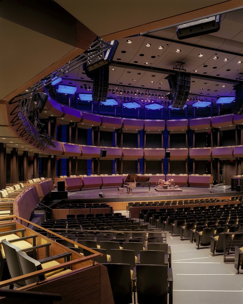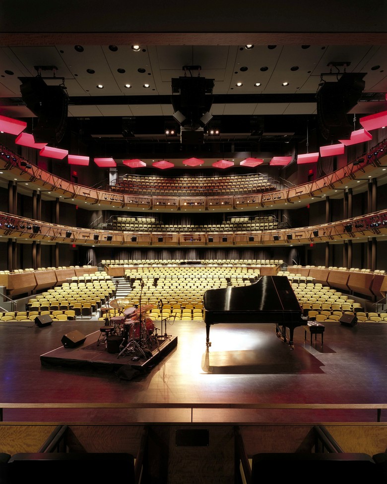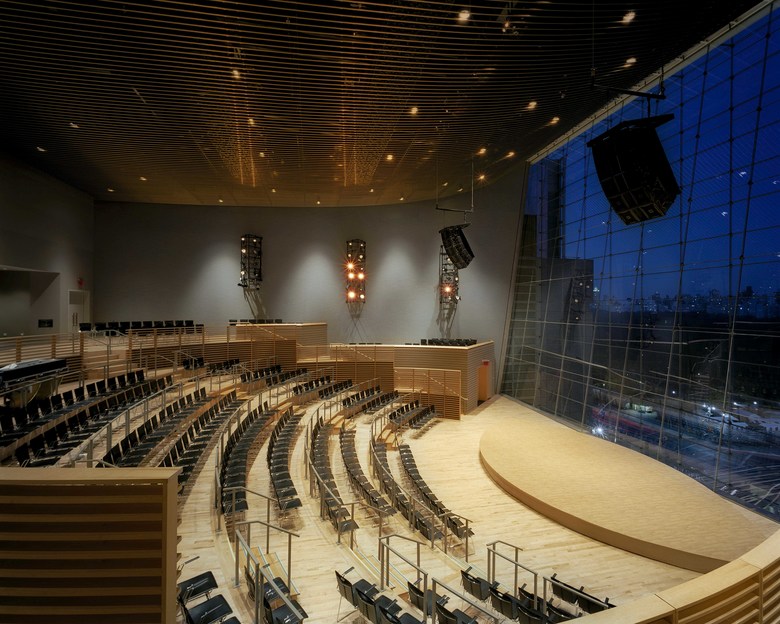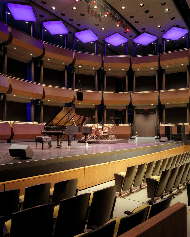 Jazz at Lincoln Center was the first performance space that was designed specifically for Jazz music. Located on Columbus Circle in downtown NYC, and features three separate venues; the most notable is the Allen Room which is backed by a 57-foot glass wall that opens up to spectacular view of Manhattan. The window also places the performers firmly in the city allowing it to serve as a vibrant background to the music being performed.