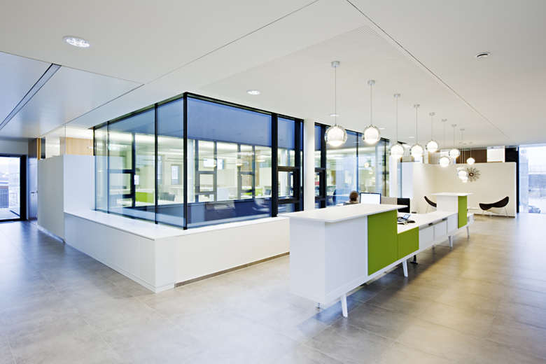 The office space of 1000m2 reflects the corporate identity of a family business.