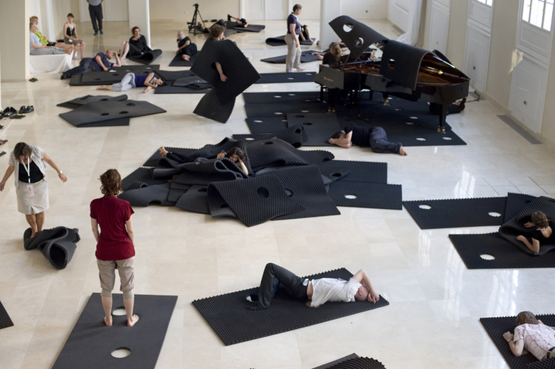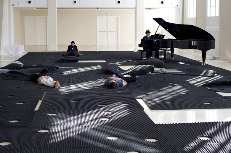 Based on the composition for piano of the eccentric musician an elaborate room installation was developed. The installation provides unique sound experience. The audience immerse in extraordinary interaction between space, time and repetition. The visitor which is part of the installation is invited to play with the operation instructions and experience their own perception layers. The Saties suggestion to repeat the composition 840 times and play it in a slow tempo to experience meditative nature of the music is a great physical and mental challenge for the pianists. Kerstin Kussmaul, Jan Burkardt and the Satie expert Stephen Whittigton are sharing that task. The audience gets operation instructions before entering the room, sound and performance installation to deal playfully with perception layers. In any case by entering the big room installation the visitor becomes recipient and protagonist at the same time. Due to the tempo of the musical procedure the performance lasts about 21 hours.