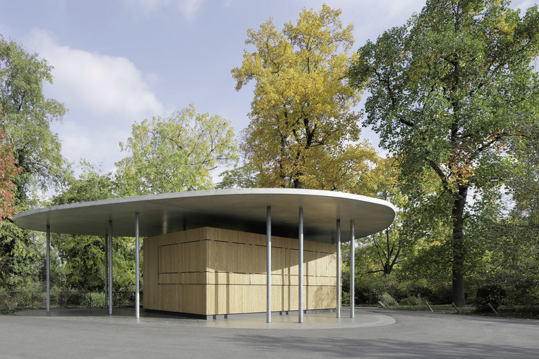 Project competition 2011, 1st place: The restaurant building, listed among the buildings worthy of protection by City of Basel, was erected by architect Heinrich Flügel in 1935, as a complete concept with hospitality area, entertainment in the form of a theatre, cinema and bowling alley, and music pavilion. The design is guided by the architectural preservation of expression of the building and his special qualities. The existing structure of the area accessible to visitors remains, though the interior has been given a gentle facelift. Large, side panoramic windows create a more open, lighter atmosphere within the self-service restaurant. A reinterpretation of the base, as a new spatial stratum in front of the main building evokes the required separation between the picnic zone and the restaurant terrace.