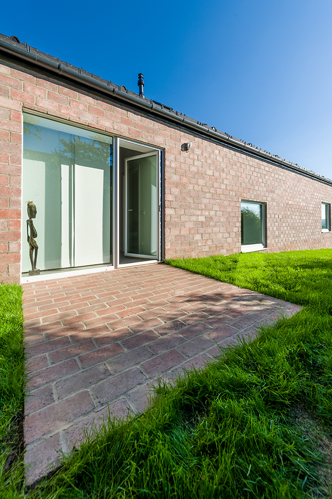 “It was our general aim to assure the proper inner climate with architectural means rather than constructing huge machinery. The house has a 50 cm thick brick wall, meeting the heating technological standards and giving sufficient thermal inertia. The ceiling slab is made of wood and the empty, well ventilated attic behaves as a „buffer zone” optimising the inner climate. The terrace of the living room plays an important role in the protection against rain or intense sunshine, while it is an extension of the living room as well as an intermediate space between in and out.” – added the architects, Laszlo Foldes and Peter Sonicz.