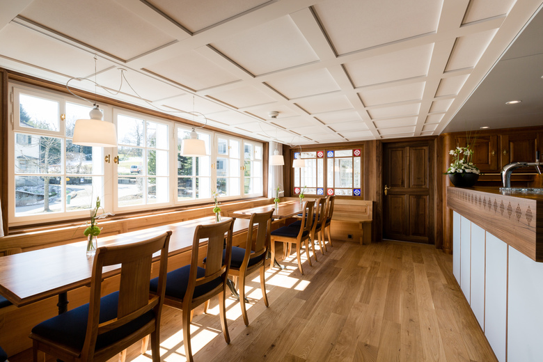 Biedermeier stand Pate für die Innenarchitektur: nicht anbiedernd oder historisierend, sondern in einer zeitgemässen Interpretation, um so das gehobene bürgerliche Ambiente mit einem klaren Ortsbezug zu schaffen.