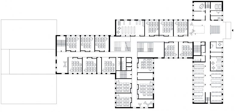 Das Konrad-Lorenz-Gymnasium ist der größte Gebäudekomplex in Gänserndorf und bietet rund 1.000 SchülerInnen Platz. Die bestehende, dunkle Gangschule mit ihren langen, einstöckigen Klassentrakten war allerdings nicht mehr zeitgemäß. Für die insgesamt 40 Klassen entwickelten wir ein neues Raumkonzept. Die Bestandsgebäude im Norden und Süden sanierten und adaptierten wir und errichteten dazwischen einen komplett neuen Bauteil als Verbindung. So verwandelten wir das alte Gebäude in eine moderne und freundliche Schule zum Wohlfühlen.