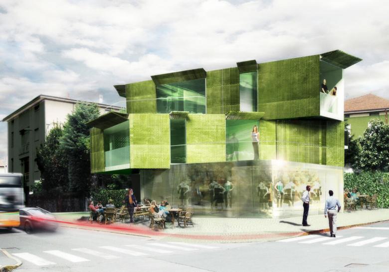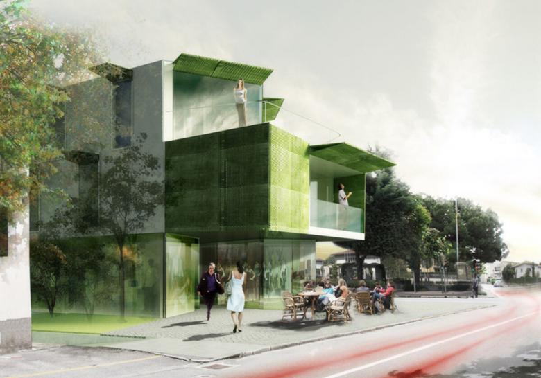 One of the primary objectives of the project consists in the addition of a new building as a new leading element of the central Piazza Giovanni XXIII, which faces the municipal building and the commercial square. The building harmoniously combines residential units and a small commercial area that faces the “piazza”. The volume is inserted into the existing context maintaining an introverted character in relation to the bordering buildings at north and west but facing the south with large openings and terraces offering the best views towards and from the piazza; this solution assures optimal orientation for the application of climactic strategies geared toward energetic efficiency and sustainability. The commercial area is located on the ground floor dividing the parking and the pedestrian access to the building. The apartments are located on the upper levels and could be reached through an elevator and a staircase that become the most characteristic design elements of the north facade. A balcony or terrace is provided for each unit, the interior layout is conceived in a flexible manner, allowing a wide range of residential alternatives by the unification or subdivision of the spaces according to the need.