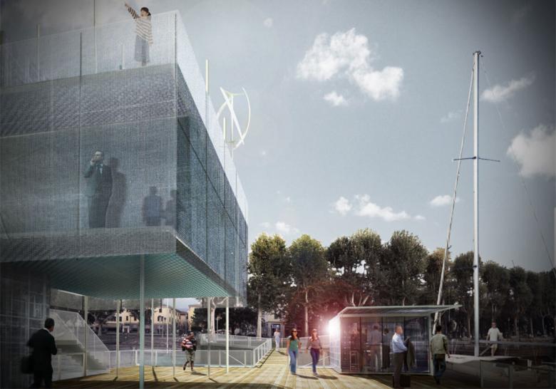 The request to design a nautical research lab of international scale came from the Milan’s Politecnico. The Lab is composed of three entities, including an experimental lab inside the University of Lecco’s campus, a hi-tech sail boat docked along Lecco’s waterfront equipped with real-scale aerodynamic and hydrodynamic measuring tools and the third and final component: a floating platform with a double function as the mooring dock for the state-of –the-art sailboat and an information and data center for visitors. The concept is characterized by a formal and structural balance with the implementation of experimental and innovative materials derived from the nautical industry. The structure is harmoniously integrated into the context and makes use of climatic strategies to render it energetically self-sufficient and free of CO2 emissions.