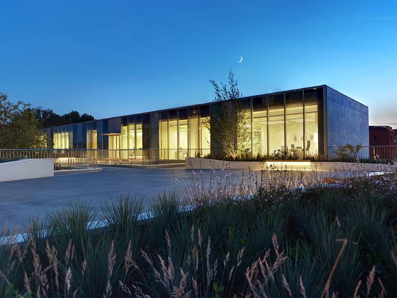 The project foresees the renovation of an existing volume in disuse within the hospital complex of the Humanitas Institute in Rozzano (just outside of Milan) that will serve as the new headquarters and landmark symbol of the Humanitas group. Today, the volume presents itself as a parallelepiped structure balanced on the border of the existing building's roof privy of a an entryway to the main building. The project's objective takes advantage of the building's favorable position and creates a kind of "light box", an etherial body that allows for transparency and visibility from within the complex and, thanks to illumination during the evening, guarantees visibility of the complex from the street. The connection with the main building is ensured by the creation of a new roof garden that with blocks of greenery accompanies the visitor's path through the space, while also animating the view from the above hospital rooms.