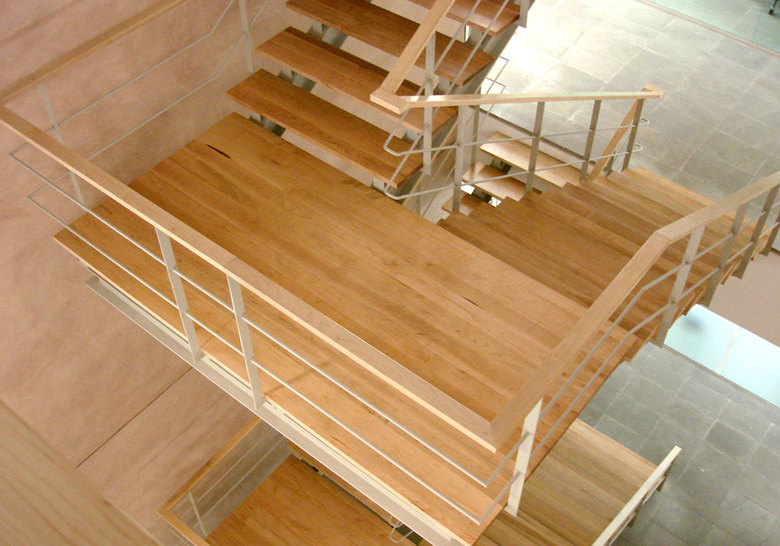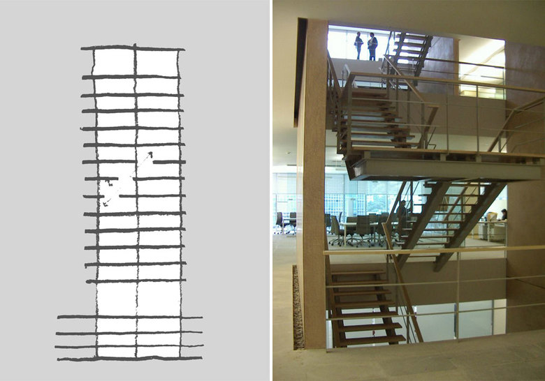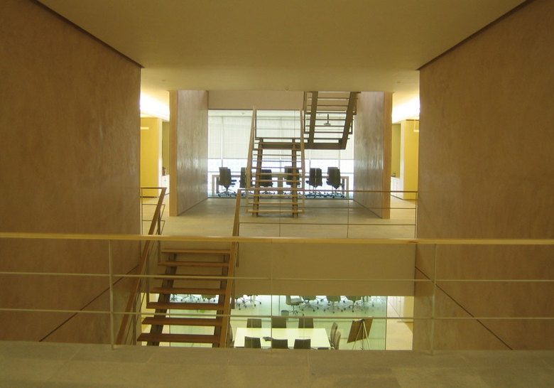 The project’s concept foresees the creation of a new staircase for the exclusive use of Technit’s staff, allowing a direct communication between the four office levels. On each floor a large foyer is created to host common functions (reception, waiting room) and to offer visual continuity between the four levels, creating the sensation of one, unique environment.