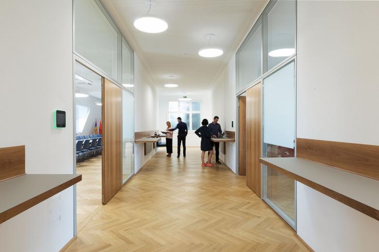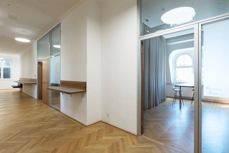 The central Viennese address is the seat of the Europe-wide institution. For its enormously growing staff, the work rooms, offices and recreation rooms on the 5th floor were renovated in terms of well-tempering and working climate and restructured in line with the needs of the growing company