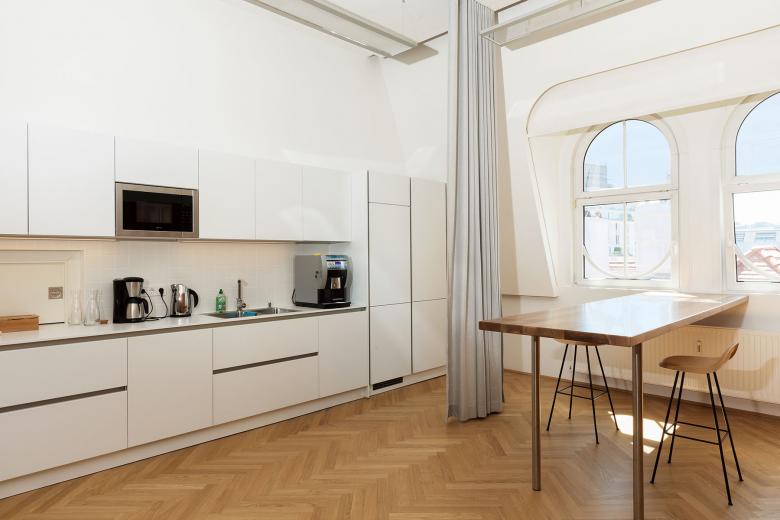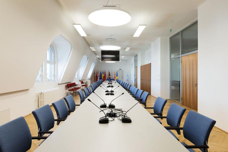 The historic building from 1913 (built according to the plans of Otto Wagner students Emil Hoppe, Marcel Kammerer and Otto Schönthal) is rented on the upper floors by the European Energy Community. As part of the functional renovation, the attic was converted into an international conference centre for up to 100 participants.
