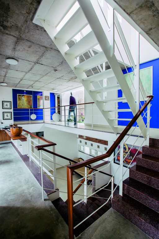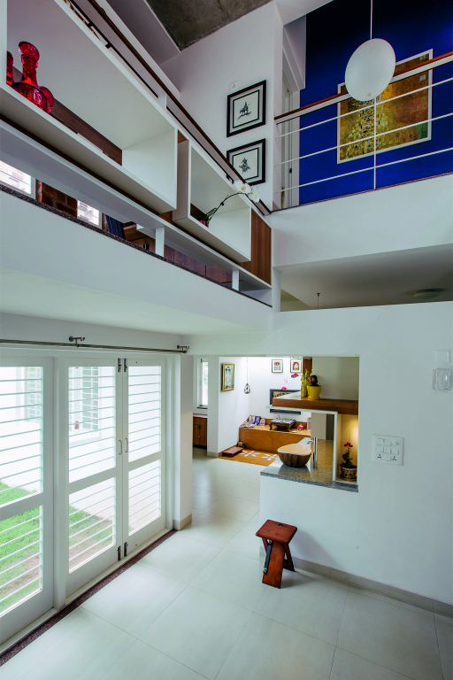 The attempt was to create a sculptural space which along with being bright and airy, segregated public and private spaces, played dramatically with scale and proportion and lastly and very importantly allow for a self sufficient unit which absorbs Bangalore's beautiful climate even if the sites next door were to be built a foot away from it. (A growing trend in Bangalore)