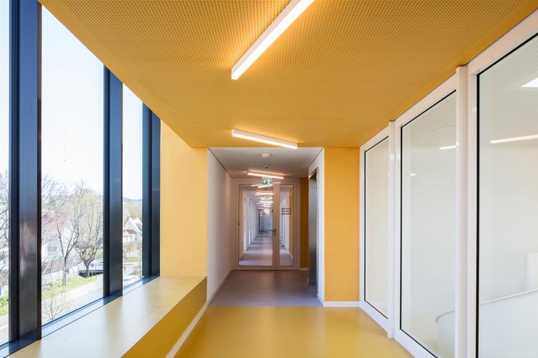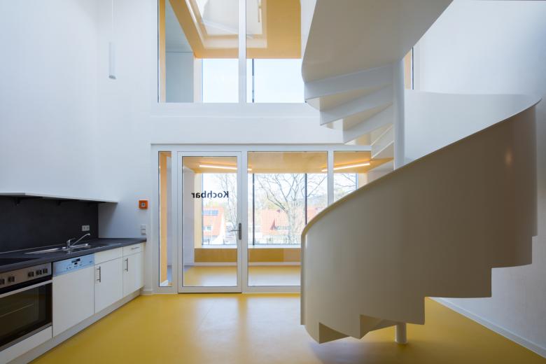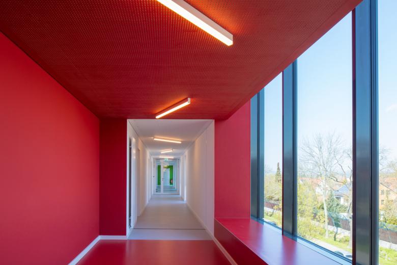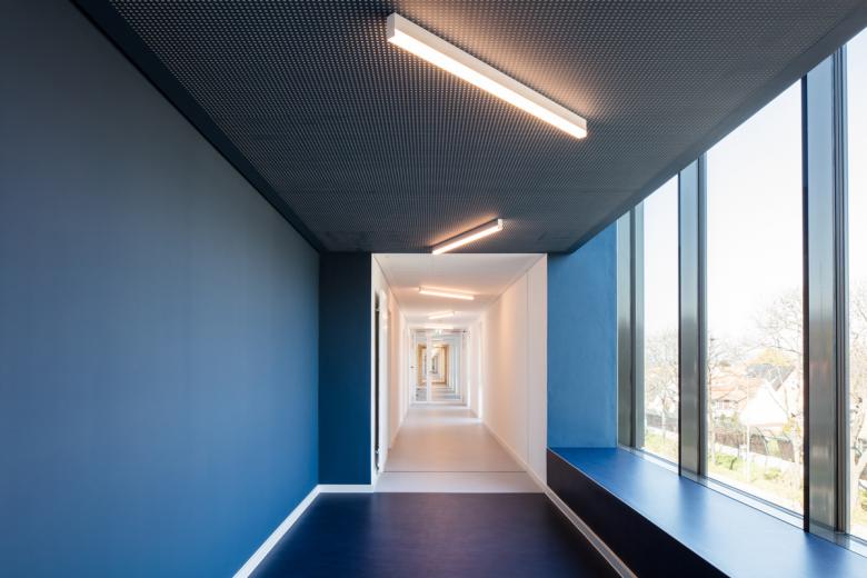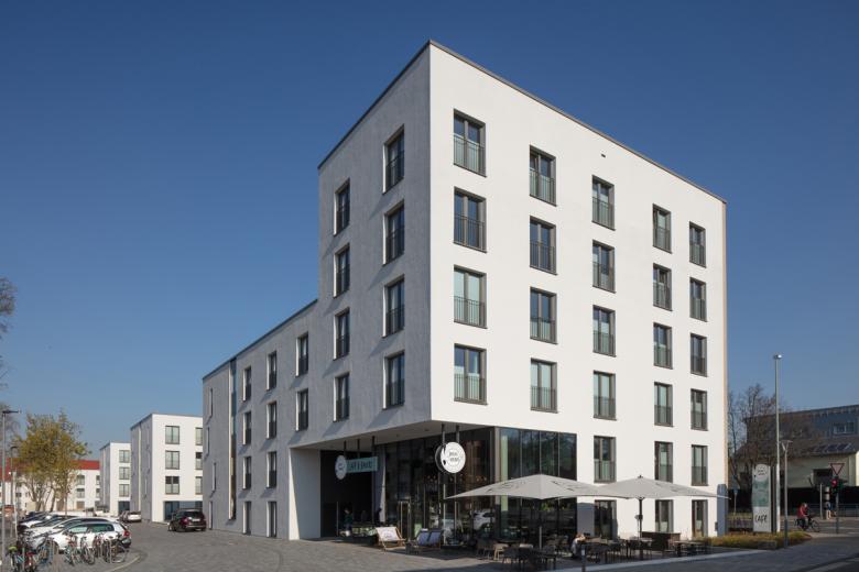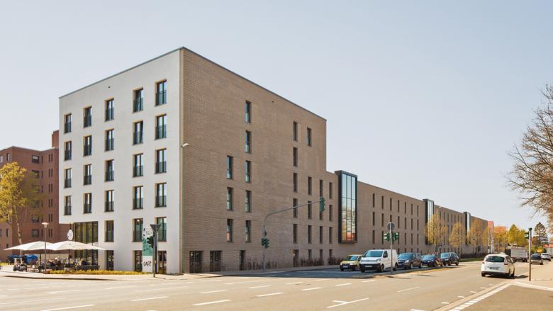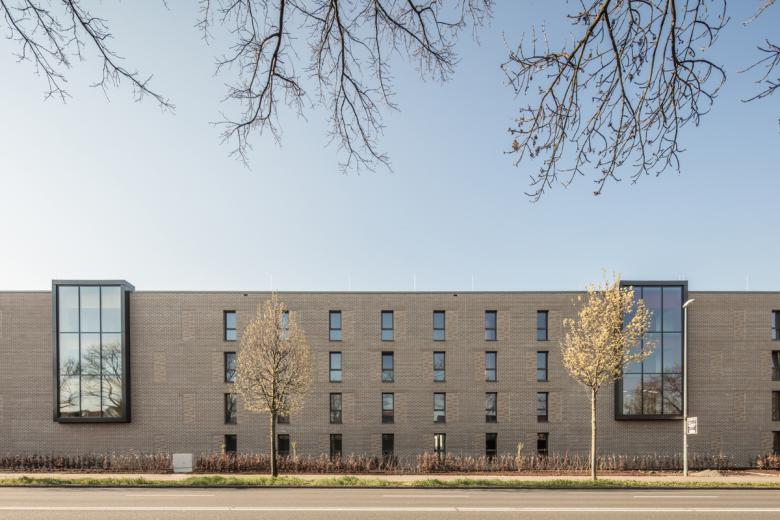 The “Apartements An der Lutter” building ensemble consists of three identical U-shaped structures, arranged in a row. The six-storey main building on the eastern entry to the city creates an accentuation within an otherwise homogenous structure. The building on the north side seals off the site from the main road, providing natural and effective noise protection for both the student apartments and the residential development to the south. To the south, the ensemble opens up towards the existing residential development, forming three landscaped courtyards, which function as spaces for communication to be used by the students as meeting spaces and for a variety of uses. Although the whole building volume can be experienced as a single sculptural form, subtle recesses in the façade and pronounced incisions and undercuts lend it structure and rhythm making each individual building legible. The rear wall, which backs onto the “An der Lutter” federal highway, is built to reduce noise, in order to avoid reflected noise towards the residential buildings to the north.