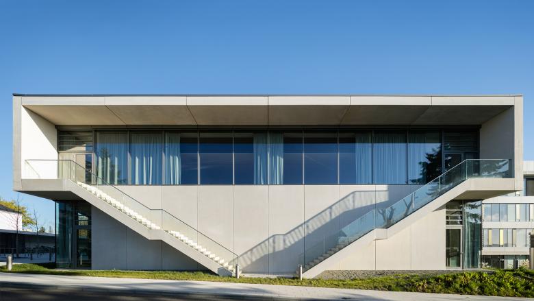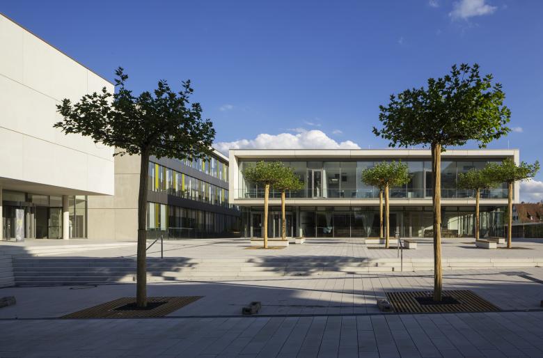 The design for Justus Liebig University in Gießen included a new lecture hall building and a new building for the chemical department. Both structures provide the urban framework for a new public square, the so-called Piazza South, at the southern end of the main circulation axis of the campus. The chemical department with a clear east-west orientation continues the structure of the existing buildings, whilst the lecture hall complex forms the structural termination of the campus axis with a north-south orientation.